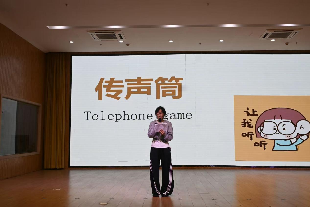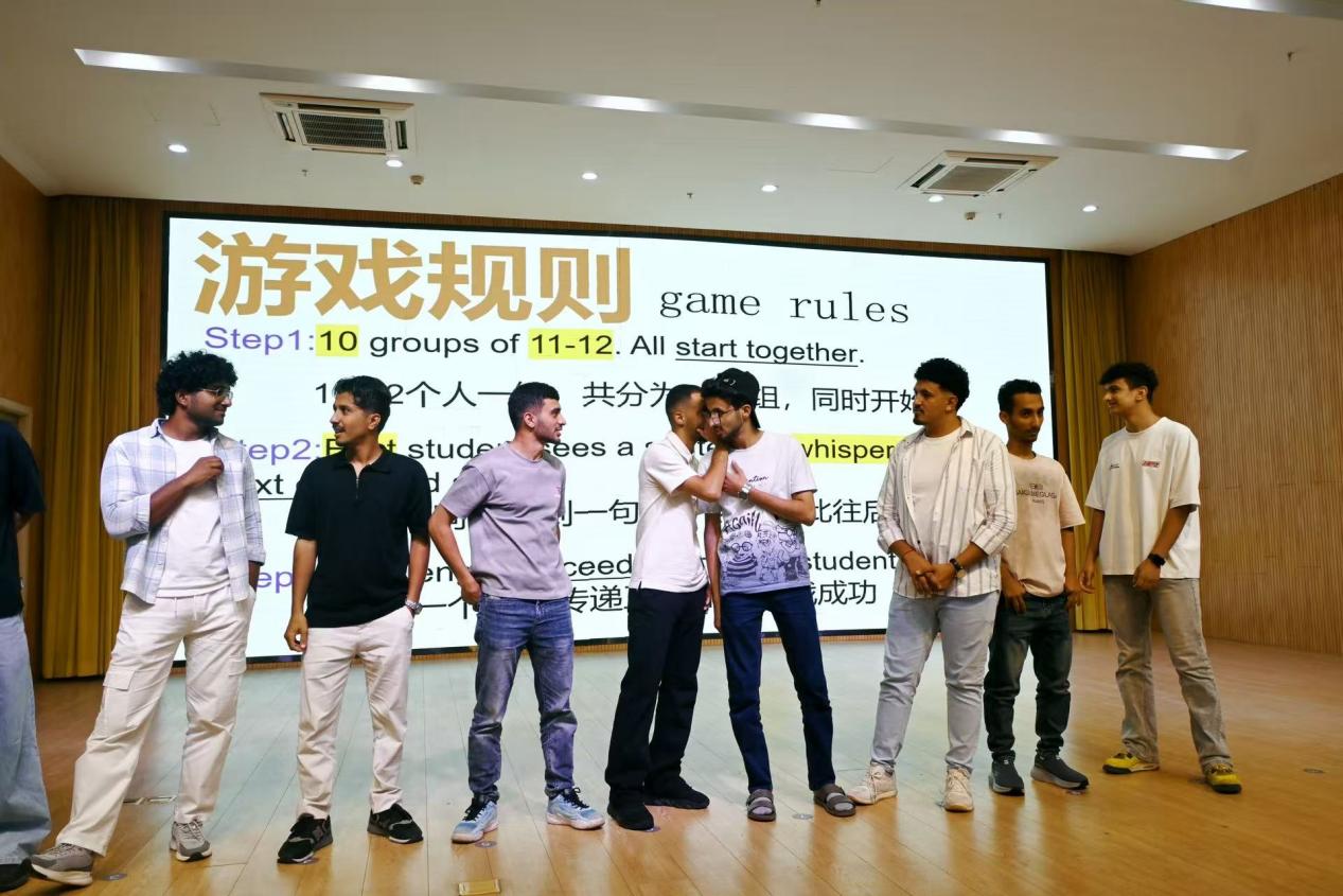 互动小游戏 “传声筒” 一登场,就直接将现场氛围燃至高潮。中外学生随机混合组队,需依次将一句中文短句从队首传递至队尾。过程中,留学生们遇到发音困惑或词义疑问时,身旁的志愿者会及时上前耐心引导。大家一边认真模仿语音语调,一边琢磨句子含义,在此起彼伏的笑声里不知不觉提升了汉语应用能力,更轻松打破了与汉语角志愿者之间的陌生感,让跨文化交流变得自然又热烈。